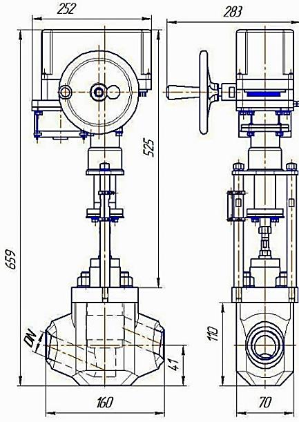частиц (грата), электропривод типа МЭП. Ремонт производится без демонтажа клапана из трубопровода путем замены элементов проточной части («клетка-плунжер»,