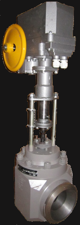 Особенности конструкции: клапан имеет сменные элементы проточной части, затвор клеточного типа с разгруженным плунжером, защитную сетку на клетке от попадания мех. частиц. Элементы проточной части имеют поверхностное упрочнение (карбонитрацию). Встроенный электропривод типа МЭП. Ремонт производится без демонтажа клапана из трубопровода путем замены затвора («клетка – плунжер», уплотнительные элементы). Расчётный срок эксплуатации – 200 тыс. часов.