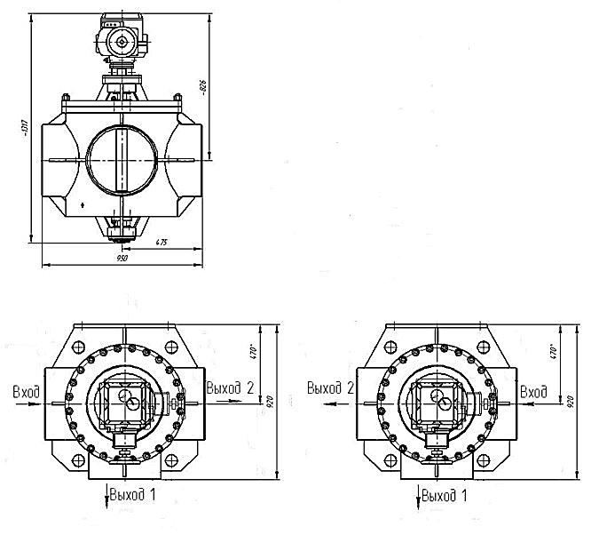 Площадь проходного сечения седла, дм2 - выход 1 - выход 2 |